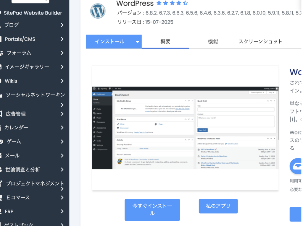 - インストールしたいバージョンは最新版になってるのでそのままでOK