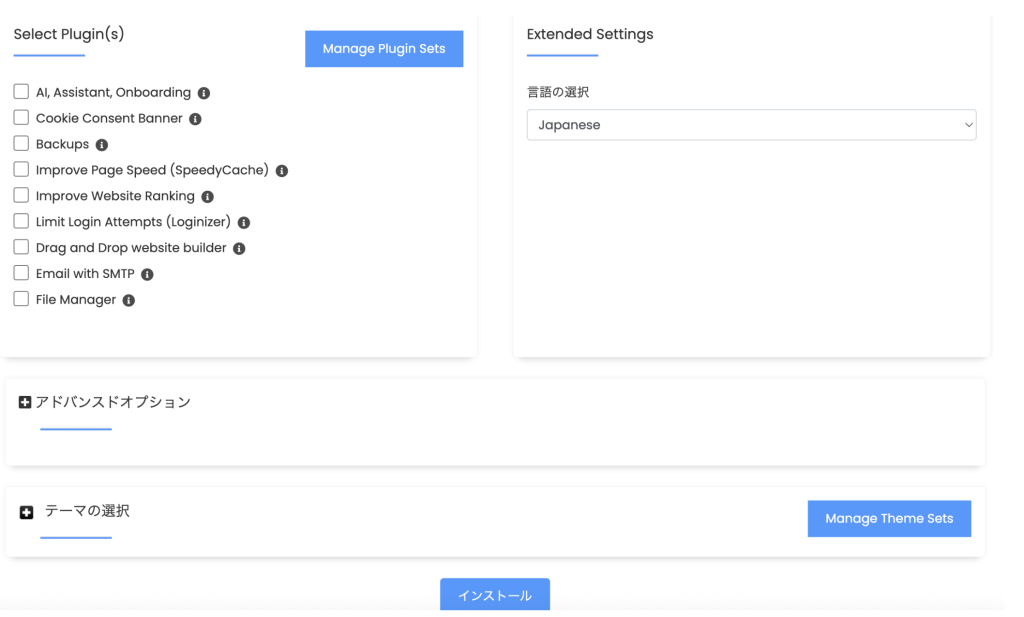 - 「Extended Settings」はJapanese(日本語)でOK。