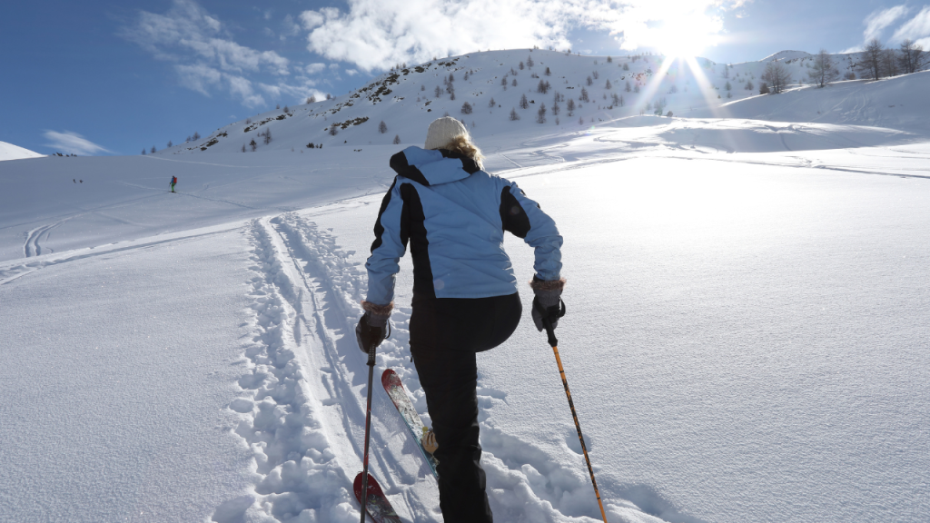 初心者にとって歩くことも疲れる行為。ブーツとスキー板に慣れることが最初