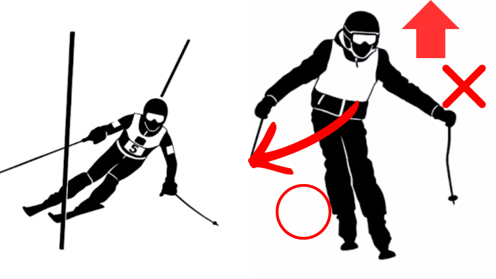 この現象は雪面からパワーをもらうアルペン選手や技術選でもよく見られます。こうなってしまうと