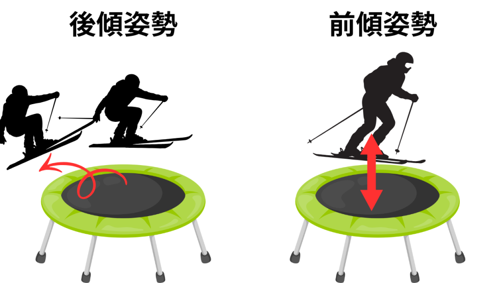 スキーはよくトランポリンに例えられますが、技術選にしろアルペンスキーにしろセンターポジションに乗らないと板に力が伝わりません。